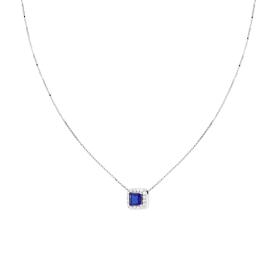 Collana con Catena Forzatina Diamantata con ovale Blu Zaffiro montato su 4 Griffe con cubic zirconia bianchi incastonati intorno.