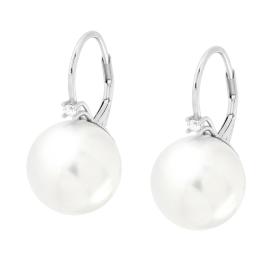 Orecchini a monachella con perla in vetro perlato bianco e punto luce cubic zirconia colore bianco montato su 4 Griffe.