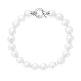 Bracciale con perle bianche in vetro perlato con finitura liscia e lucida.