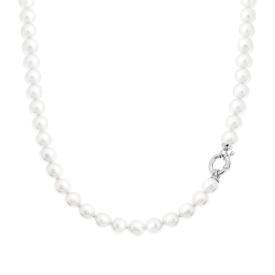 Collana con perle bianche in vetro perlato con finitura liscia e lucida.