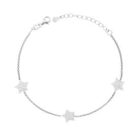 Bracciale con catena forzatian allungata con finitura diamantata con accessori in linea a forma di stelle, piatte lisce e lucide.<...