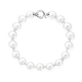 Bracciale con perle bianche in vetro perlato con finitura liscia e lucida.
