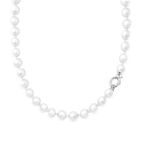 Collana con perle bianche in vetro perlato con finitura liscia e lucida.