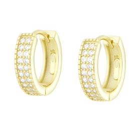 Orecchini cerchio a canna torchon con finitura lucida e cubic zirconia colore bianchi incastonati.