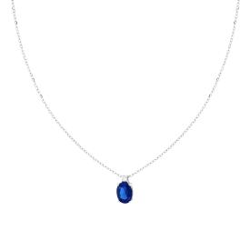 Collana con catena forzatina diamantata con accessorio pendente ovale Blu Zaffiro con cubic zirconia bianchi incastonati intorno.