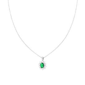 Collana con Catena Forzatina Diamantata con ovale Verde Smeraldo montato su 4 Griffe con cubic zirconia bianchi incastonati intorn...