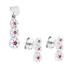 Parure Set composta da Ciondolo e Orecchini a forma di fiore, cubic Zirconia colore Rosso Rubino contornato da cubic zirconia Bian...