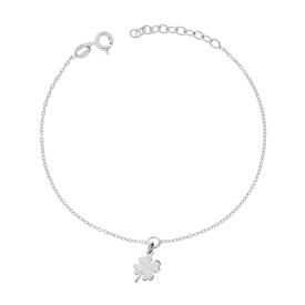 Bracciale con catena forzatina diamantata e accessori forma di quadrifoglio plain con finitura traforata e lucida. Made in Italy
