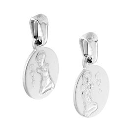 Ciondolo Medaglietta a forma ovale con al centro immagine in rilievo della Madonna.