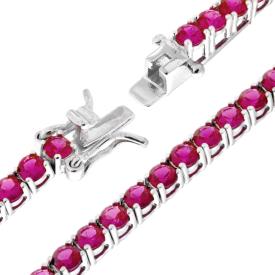 Bracciale Tennis con Zirconi Bianchi e Rosso Rubino incastonati alternati, uno bianco ed uno Rosso Rubino, su montatura 4 Griffe.