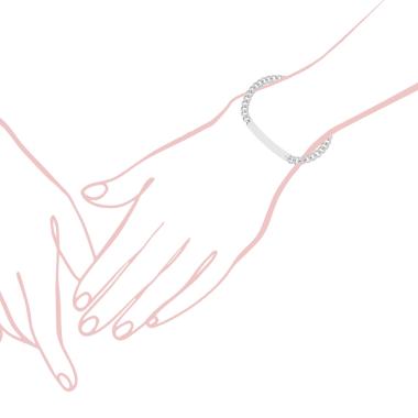 Bracciale con Targa con finitura liscia e lucida e Cubic Zirconia bianco incastonato con catena grumetta con cubic zirconia bianch...