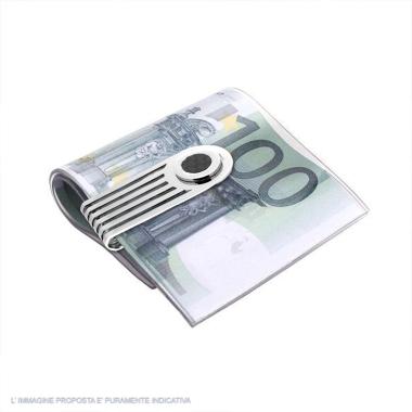Fermasoldi con Piastra avvitata con lavorazione liscia e lucida. Incisione laser a righe.