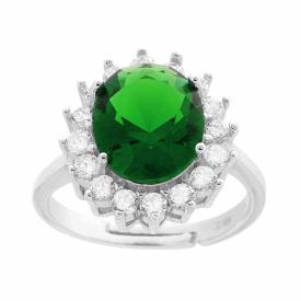 Ciondolo rettangolare con Cubic zirconia ovale colore Verde Smeraldo su montatura 4 Griffe, con cubic zirconia bianchi incastonati...