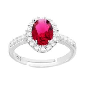 Ciondolo di forma Ovale con Zircone Rosso Rubino e Zirconi Bianchi incastonati a giro.