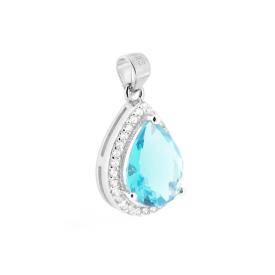 Orecchini di forma ovale con zircone Blu Zaffiro montato su 4 Griffe, contornato da zirconi bianchi.