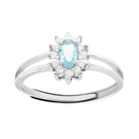 Ciondolo di forma Ovale con Zircone Acquamarina contornato da Zirconi Bianchi.