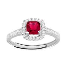 Orecchini Trilogy con Zirconi colore Rubino Contornati da Zirconi Bianchi.