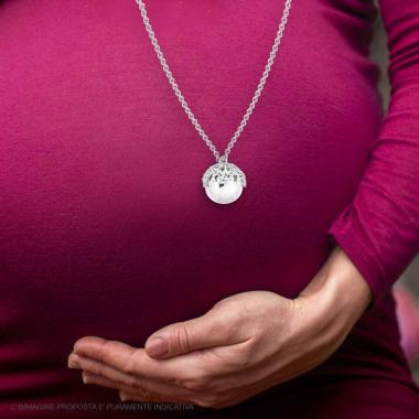 Collana con catena forzatina con accessorio pendente sfera sonaglio chiama angeli con finitura liscia e lucida e bimba e bimbo con...