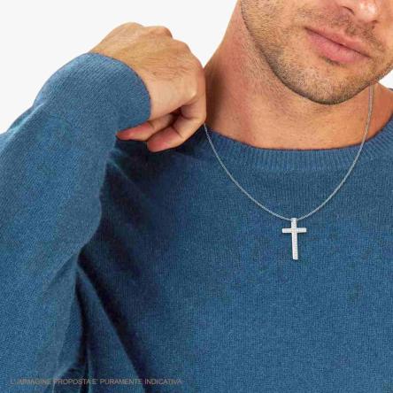 Collana con catena forzatina e accessorio centrale a forma di croce con Crystal bianchi incastonati.