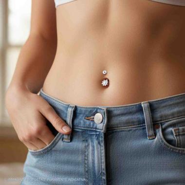 Body piercing banana con accessorio a forma di fiore con cubic zirconia colore bianco incastonati.