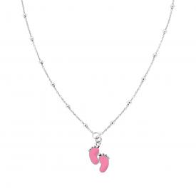 Bracciale con catena rolò con palline smaltate e accessori pendenti a forma di fiocco con applicazione smalto colore fucsia e ros...