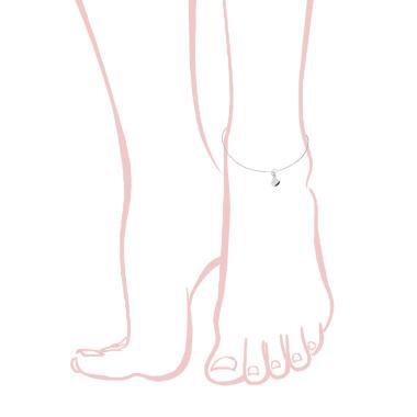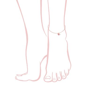 Cavigliera con catena grumetta con perlina colore rosso e accessori pendenti a forma di Cuore, con finitura liscia e lucida.