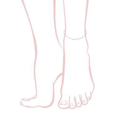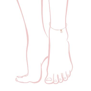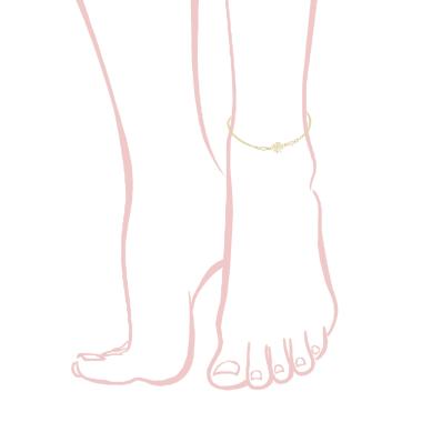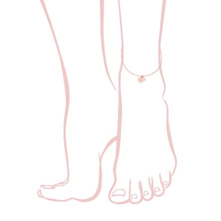 Cavigliera con catena grumetta con accessori pendenti a forma di Cuore e Stella, e Zircone bianco incastonato a cipollina.