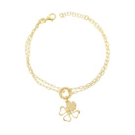 Collana con Catena Forzatina Diamantata con palline e accessori pendenti, Quadrifogli plain lisici e lucidi, cubic zirconia bianch...