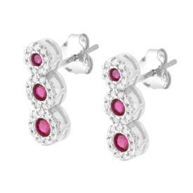Ciondolo tennis con fiori pendenti composti da tondo rosso rubino con cubic zirconia bianchi montati intorno.