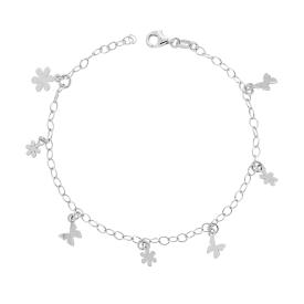 Bracciale con catena forzatina diamantata con accessorio centrale composto da cinque fiori con cubic zirconia bianchi montati su G...