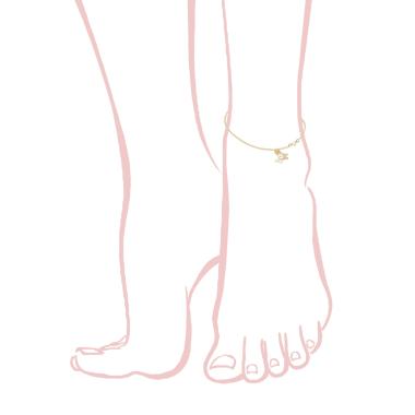 Cavigliera con catena grumetta con accessori pendenti a forma di Cuore e Stella, e Zircone bianco incastonato a cipollina.