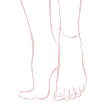 Cavigliera con due fili catena Traversino e con cuori, con finitura lucida e brillante.