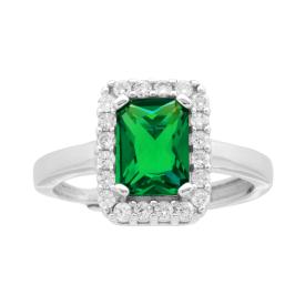 Orecchini rettangolari con Cubic zirconia colore Verde Smeraldo su montatura 4 Griffe, con cubic zirconia bianchi taglio trapezio ...