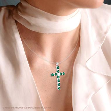 Ciondolo a forma di croce con cubic zirconia Verde Smeraldo incastonati.
