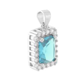 Anello rettangolare con Cubic zirconia colore Acquamarina su montatura 4 Griffe, con cubic zirconia bianchi taglio trapezio incast...