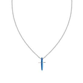 Collana con catena forzatina diamantata con accessorio pendente a forma di croce blu con finitura liscia e lucida.