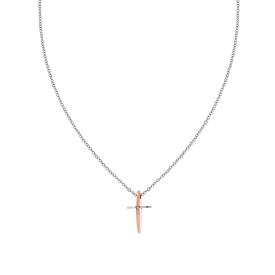 Collana con catena forzatina diamantata con accessorio pendente a forma di croce con crystal bianchi e rosa incastonati.