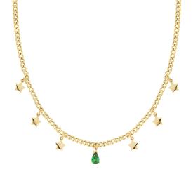 Bracciale con catena forzatina e crystal verde con tre fili pendenti e accessori a forma di stella plain con finitura liscia e luc...
