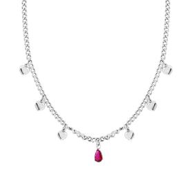 Bracciale con catena forzatina diamantata con accessorio in linea a forma di Ciliegie con cubic zirconia Rosso Rubino e con applic...