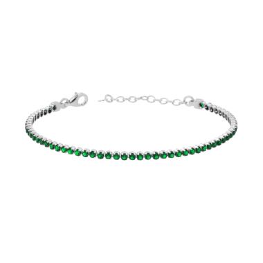 Bracciale Tennis con Zirconi Verde Smeraldo incastonati su montatura 4 Griffe.