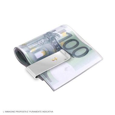 Fermasoldi plain con accessorio a forma di cavallo rampante colore oro, con lavorazione liscia e lucida.
