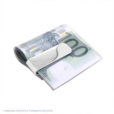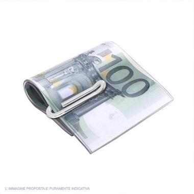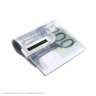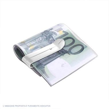Fermasoldi con Piastra avvitata con lavorazione liscia e lucida. Incisione laser a righe.