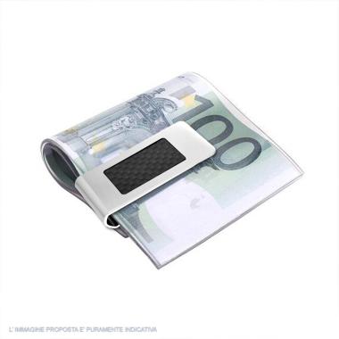 Fermasoldi plain con applicazione simil Carbonio colore nero.