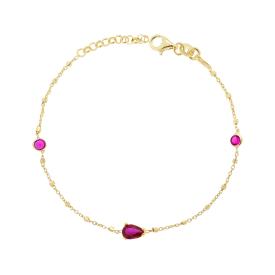 Collana con Catena Forzatina Diamantata con ovale rosso rubino su montatura 4 Griffe con cubic zirconia bianchi incastonati intorn...