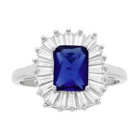 Orecchini con montatura rettangolare con cubic zirconia centrale colore Blu Zaffiro e cubic zirconia bianchi incastonati intorno.