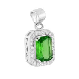Orecchini rettangolari con Cubic zirconia ovale colore Verde Smeraldo su montatura 4 Griffe, con cubic zirconia bianchi incastonat...