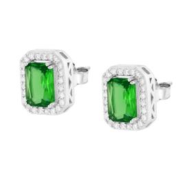 Ciondolo di forma Ovale con Zircone Verde Smeraldo e Zirconi Bianchi incastonati a giro.