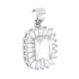 Anello con cubic zirconia verde smeraldo quadrato montato su Griffe con cubic zirconia bianchi incastonati.