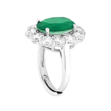 Anello con ovale Verde Smeraldo montato su 4 Griffe con cubic zirconia bianchi incastonati intorno.