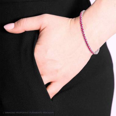 Bracciale Tennis con Zirconi Bianchi e Rosso Rubino incastonati alternati, uno bianco ed uno Rosso Rubino, su montatura 4 Griffe.